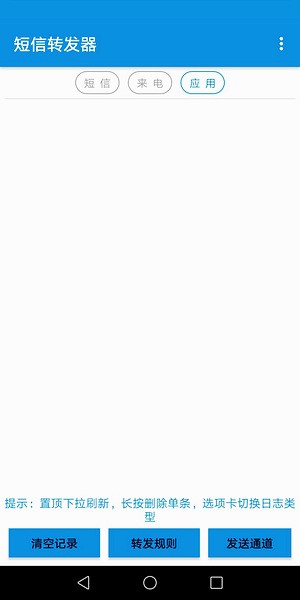 5、在短信转发器的主页面下拉可刷新转发的短信,点击清空记录可删除转发的记录