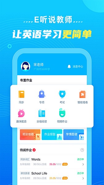 E听说教师支持同时管理多个班级,科学量化教学成果。