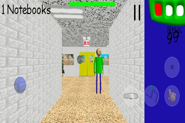 2、进入游戏后,玩家可以开始寻找笔记本啦,左侧则是恐怖的巴迪老师,玩家要小心别被他抓到。