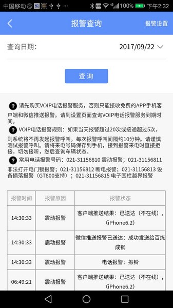 4.提供防盗电话报警,用户通过手机客户端远程控制您的车辆。