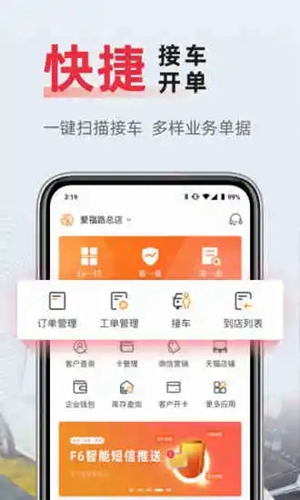 F6智慧门店APP是一款主打汽修门店管理接单的软件,界面简洁清爽,功能丰富强大,为维修门店提供全新管理思路。无需传统纸质单据,快速扫描车牌即可登记接车,并支持预检检测报价等多种电子开单单据,让办事效率大幅度提升。同时更有智能CRM为门店提供多样营销方案,且支持客户标签管理、客户评价功能等,满足所有营销方法。此外如果遇到部分维修疑难问题,还能通过软件查询各项技术指导,并获取相应的养护操作指导及建议,为用户一站式解决经营烦恼。
