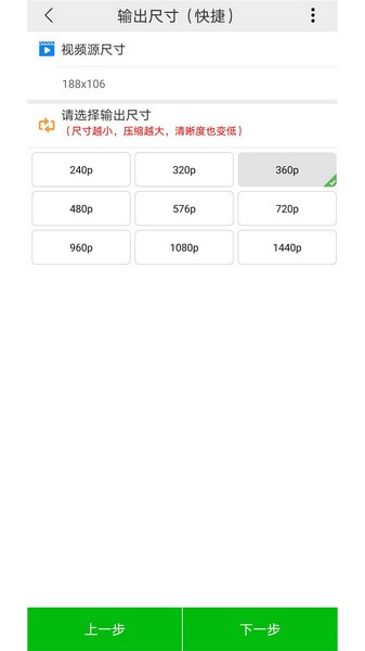 2、小视频压缩支持的主要功能有:调整视频尺寸(分辨率),选择视频质量、媒体输出格式、视频编码、音频编码,是否删除音频等功能