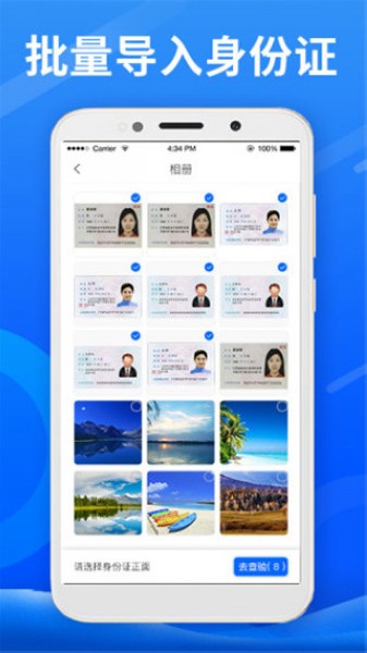 2、身份证信息导入:支持多种导入方式,扫描身份证、图库导入、手动输入。