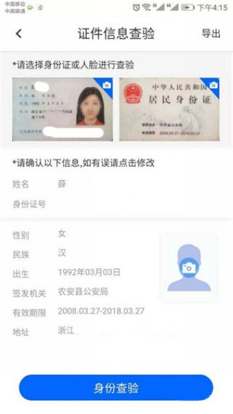 3、身份证信息存储:身份信息存储于用户本地,无信息泄露隐患。