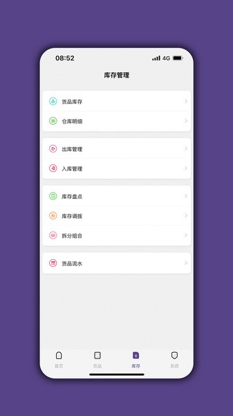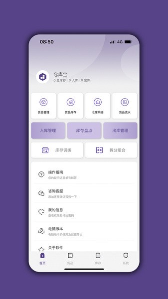 货品管理、出库入库、库存盘点、库存调拨、拆装组合、仓库管理等