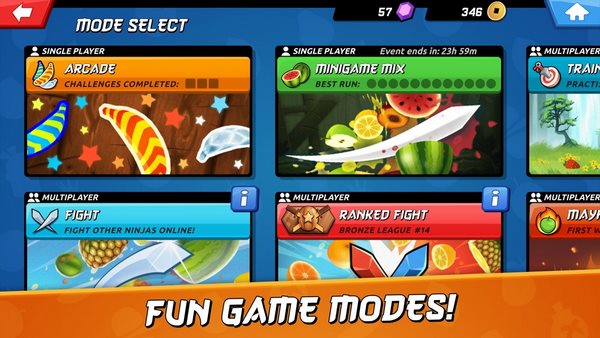 水果忍者2游戏目前共有三种不同的模式可供玩家选择