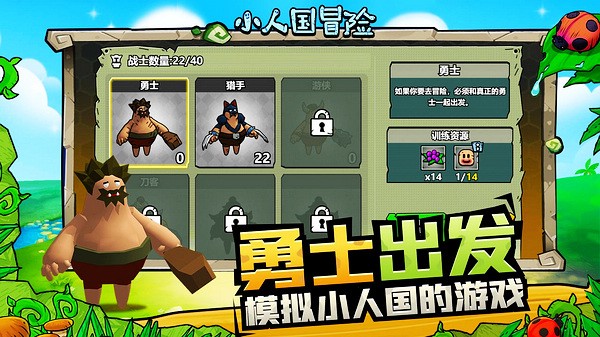 2、打造勇士来探索地图,抵御威胁,多样的小人职业确保小人部族的稳定发展;