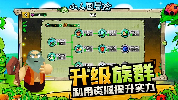1、在小人国冒险从零开始建立自己的小人国,按照自己的想法让自己的小人部族发展壮大;