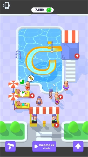 自由建设:玩家可以根据自己的想象力和创造力来设计并建设自己的水上乐园。从选择乐园的地点和主题,到建造滑水道、泳池、冲浪池等各种设施,玩家可以完全自由打造独一无二的乐园。
