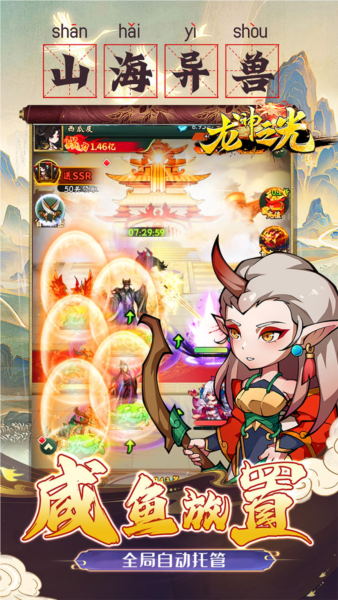 2、轻松休闲的游戏体验:作为一款放置题材的手机游戏,《龙神之光》支持全自动托管,让玩家在忙碌的生活中也能轻松享受游戏的乐趣。游戏的玩法轻松休闲,适合学生党、上班族等休闲时间不充裕的玩家。