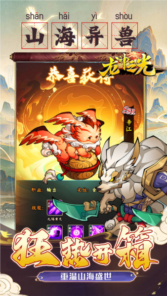 1、收集与养成玩法:游戏中可以收集到众多的奇珍异宝和山海神兽,这些神兽不仅拥有独特的外观和技能,还能通过养成系统提升实力。玩家可以通过开箱孵异兽的玩法,重温山海盛世,体验收集与养成的乐趣。
