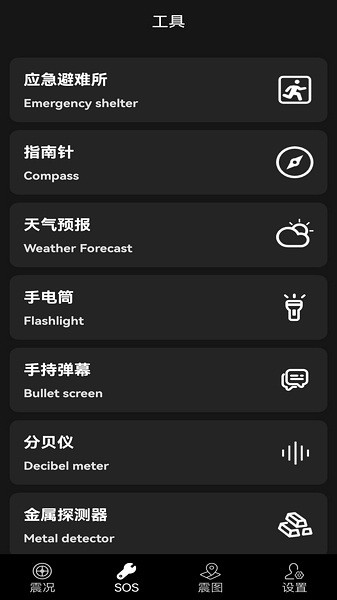 6、自救工具:地震预警快报包含手电筒、指南针、GPS定位、查找避难场所等实用小工具。