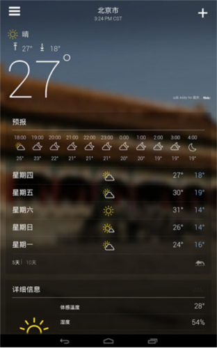 2、详尽的天气信息,包括10日的天气预报和24小时的温度预报