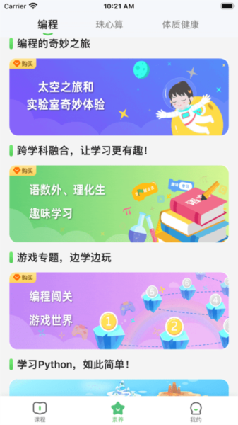 结合国家政策,精心打造编程、珠心算、艺术、体质健康等素养产品,培能力、锻思维、强体魄。