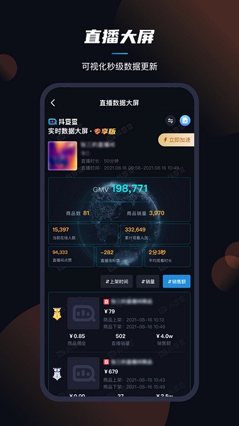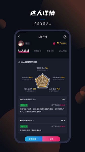 6、平台通过分钟级检测实时了解掌握视频、达人及商品的变化趋势;