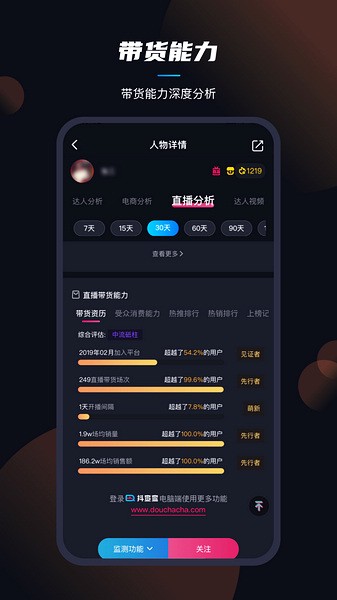 总的来说,抖查查是一个高效且贴心的带货数据分析工具,尤其适合团队协作。如果你也在抖音带货领域打拼,这款APP绝对值得一试!