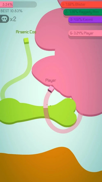 纸片大作战2是一款多人联机对战的IO休闲游戏。在这款游戏中玩家每人操控一种颜色的纸团,通过纸团来抢占地图上的地盘,并伺机消灭淘汰其他玩家来吞并扩张自己的地盘,在勾心斗角中获得最多地盘的玩家获胜。每位玩家在游戏开始时都可以安心地扩张势力不用担心被攻击,但随着时间的推进,玩家与玩家之间的碰撞是迟早要发生的,如何面对变幻的局面需要玩家冷静思考策略。