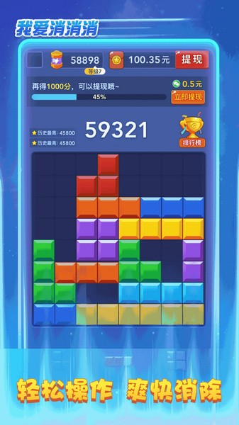 1. 简单易上手:我爱消消消游戏规则简单明了,玩家只需点击两个或更多相同的方块即可消除。