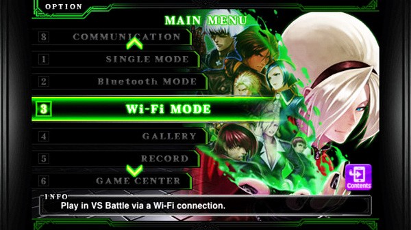联机对战方面支持蓝牙和wifi网络对战。游戏中获得的路丝铜板还可在rose shop里和各种商品交换。总共32名角色,更能同全国的强者用wi-fi对战,即使是一个人也能长时间地游玩的6种single mode(单人模式),以简单操纵使出爽快的连续技吧