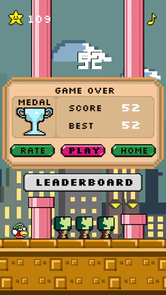 下坠的小鸟游戏是一款有着复古像素风格的休闲闯关类手游。各位小伙伴们有没有幻想过成为一只鸟儿,自由自在地飞翔呢?在游戏中,玩家们将会扮演一只带着帽子的小鸟,在每个关卡中你都会遇到各种各样的障碍,而你需要小心翼翼地通过这些障碍。在路上会有着许多的金币可以收集,一些地方还隐藏着一些道具,它们可以辅助你更好地通过难关。飞起来吧,小鸟们!下坠的小鸟游戏是一款休闲有趣的飞行游戏,下坠的小鸟游戏的小鸟非常可爱,小鸟将在城市的柱子当中飞行,你要小心不要碰撞到柱子,收集星星还可以购买其它像素鸟。玩家需要有节奏地点击屏幕,这样才能够让小鸟保持一种匀速飞行的状态,一旦你不点击屏幕了,小鸟就会掉下去。在飞行的过程中,除了要帮小鸟避开陷阱以外,你还要注意多多地帮小鸟收集星星。