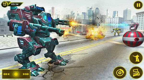 机甲军团机器人大战3d是一款以机器人为题材的动作类游戏。3D的精致建模、炫酷的技能特效、流畅的打击感简直让人对这款手游欲罢不能。都说机器人是男人的浪漫,在这里玩家们可以操控着自己心仪的钢铁巨人来一趟淋漓尽致的大战。你需要控制着自己的机甲将邪恶的敌人们一一消灭。还在犹豫什么,猛男们赶紧指挥着你们的机甲进行战斗吧。你喜欢超级机器人游戏吗?如果是,那么欢迎来到机器人军团:机甲之战游戏,而一位巨型机器人摩托车英雄则需要与超级恶棍战斗才能结束未来派机器人大战。人们需要生存的希望,通过与犯罪作斗争成为他们的英雄。将飞行中的机器人转变成装甲球并与邪恶的机器人作战。成为飞行机器人自行车球的英雄!机甲军团机器人大战是一款好玩刺激的战争射击游戏,玩家控制着各种机器人在城市当真进行战斗,将来犯的各种邪恶机甲军团们全部消灭,包括了众多高科技武器可以使用,给你呈现出大片般的视觉体验,赶快来战斗吧!