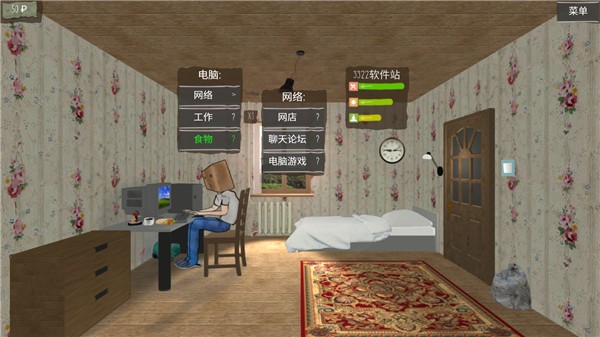 这个游戏挺有意思的,模拟了一个“死宅”的生活状态,感觉有点像我自己平时的状态,每天都在房间里晃悠,主要通过网络与外界联系。游戏里有三个核心指标:饱食度、快乐度和平静度,这三个值如果掉得太低,就会触发一些意想不到的事件,听起来还挺惊险的。