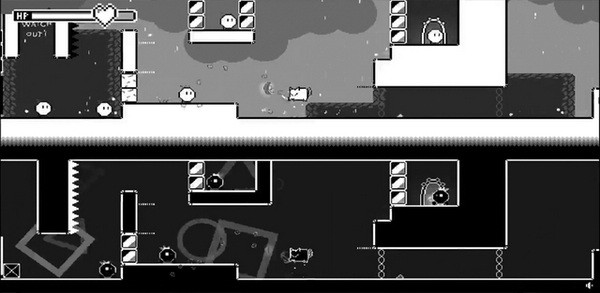 具有“两个”可玩角色的平台游戏,其中玩家控制“白猫”,同时也适用于“黑猫”。