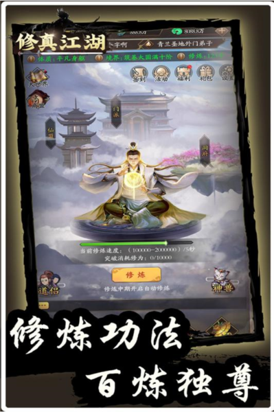 修真江湖旧版是一款充满东方神秘色彩的挂机修真手游,它以独创的剧情和精致的国风水墨画风吸引着无数修真爱好者。游戏主打轻松挂机玩法,让你在忙碌之余,也能体验修真乐趣。在修真江湖里,你可以探索真实的修真仙道,解锁各种新奇的玩法,享受一段段精彩绝伦的特色剧情。