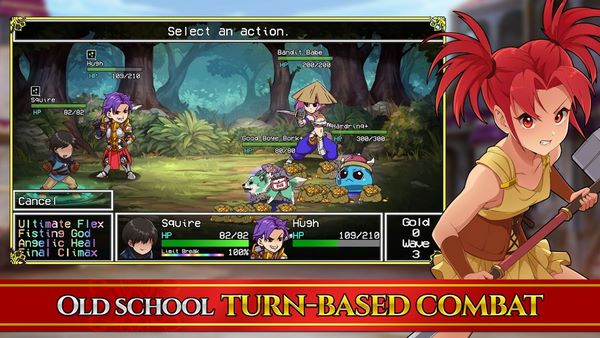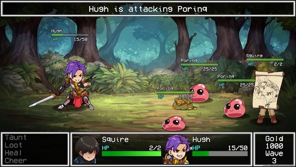 回合制战斗—— 你也许不是一位像样的侍从,但是你拥有一些非传统的特技,来让你侍奉的可怜骑士活命。使用嘲讽、鼓舞、治疗、搜刮来达到胜利!