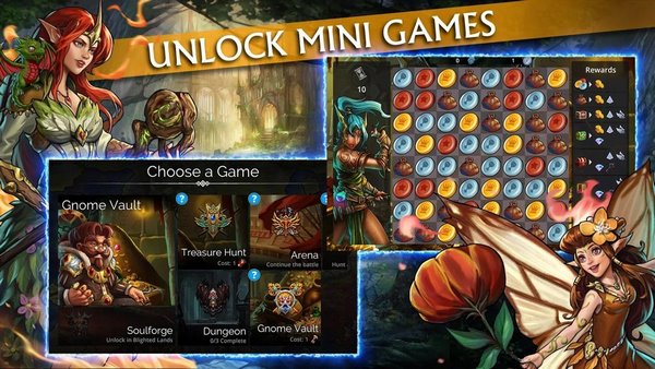 打造你的英雄队伍:享受丰富的免费内容,600+个可收集军队,600+个可发现任务与故事情节,您还可收集250+种武器与法术。