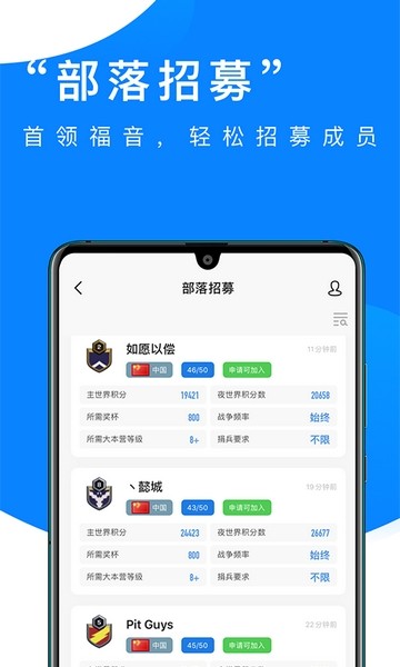 【部落招募】首领玩家再也不用发愁怎么招募成员啦,一键导入部落资料,设定招募条件,轻松找到合适的成员
