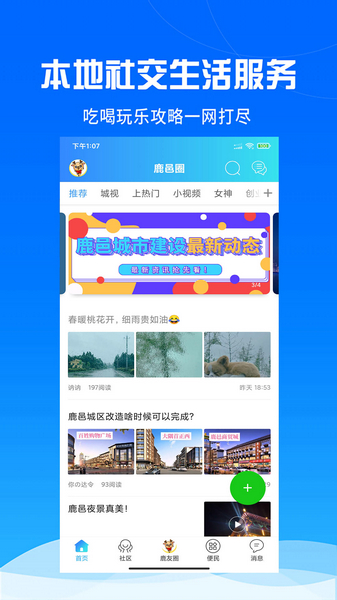 鹿邑圈是一款为鹿邑本地打造的社交软件,这里既有本地的美食、风景美图,还有各种爆料、新闻。为鹿邑人打造自己的兴趣圈子,晒出自己的生活,交到本地的朋友。各类生活服务一目了然,吃喝玩乐攻略应有尽有。本地资讯服务速报,新鲜话题第一时间奉上。还提供了各种优惠信息,出门聚餐先刷一刷,欢聚消费不浪费。当然,想来鹿邑旅游的朋友也欢迎下载本软件,帮助你更快融入这个地方,旅游畅玩不再迷茫。还有出租房屋、闲置二手信息查询,本地消息更加流通。