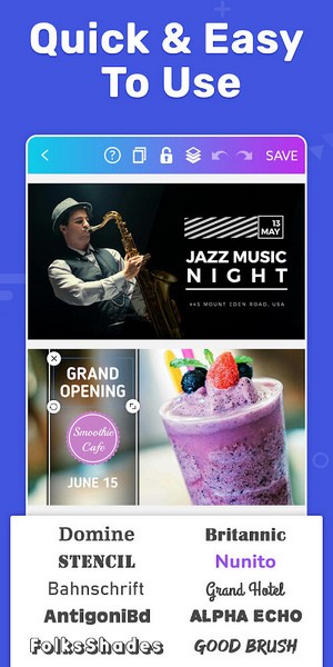 Banner Maker破解版是一款便利好用的手机海报制作软件。这款软件能够为用户提供海量的制作素材,各种各样的制作模板和制作工具,帮助用户快速制作出想要的海报。除了海报,用户也可以使用软件来制作壁纸,亲自动手制作喜欢的壁纸,赋予各种颜色和内容。此外,软件每天都会更新最新的素材供用户使用。本页面提供修改解锁后的破解版。