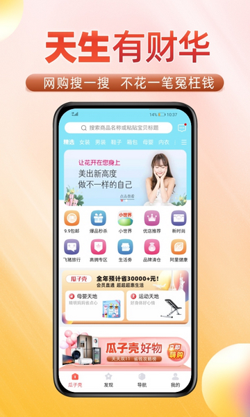 瓜子壳汇集全网知名购物频道,精选上万张专享优惠券,打造一站式返利App,让你一边开心惠利购物的返利App,一边轻松兼职赚钱,券后下单还能获得各种优惠券,购物返利超级实惠哦!不光领券购物有返利,分享好友还能享受躺着也赚钱的待遇体验!