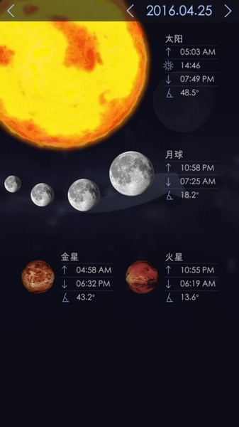 Star Walk 2是一款非常有趣的行星观测和天文科普软件,大家可以在这里掌握更多的天文知识。软件中有着详细的天体介绍,用户能够在这里近距离的观察星空,还能了解行星、卫星以及轨道流星雨、星座等等。此外,大家还能够实时追踪国际空间站的位置信息,充分满足大家的天文观测需求。大家只需要将自己的手机朝向天空就能够快速获取夜空中星星们的准确位置。