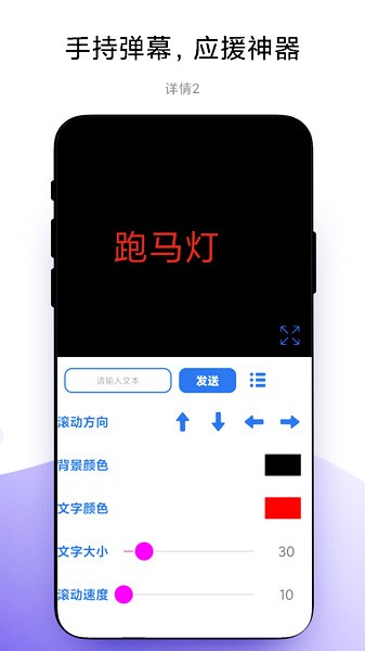 万能手机灯牌是一款非常实用的手机屏幕显示软件,最近越来越多的明星、歌星开始举办演唱会,作为粉丝如果想要在演唱会的大屏上一言看到自己就需要一个很好的LED弹幕工具,这时候这款万能手机灯牌就发挥作用了,它内置了多种屏幕显示选项,其中包括滚动文字、图片、视频、GIF动画,大家可以在上面创作任何想要写的字、图画等等,并且文字的颜色、大小、滚动方式都可以自定义,使用起来非常方便。