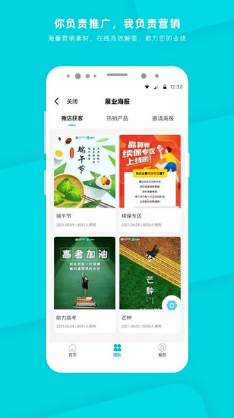 2、强大的展业工具,展业海报,文章分享获客等一应俱全;