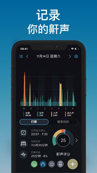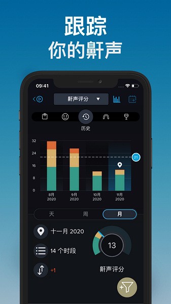鼾声分析器高级版是一款在国外非常受欢迎的鼾声分析软件,很多人睡眠都会有打鼾的习惯,并且不同的人打鼾的声音可能都会有所不同,使用这款软件就可以检测大家的睡眠,记录下大家每天晚上的打鼾情况,系统会根据大家的打鼾情况进行评分,还会有专业的医生为大家分析,提供可靠的治疗方案,此版本为大家解锁了高级版,所有高级功能全部解锁,给大家带来更好的使用体验。