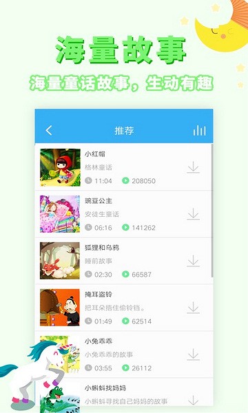 海量童话故事音频,让您的孩子可以选择任何喜欢的故事。