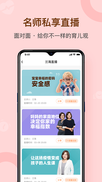 每月一期,兰海线上实时直播早教育儿专业内容、在线答疑,帮助父母更好的进行家庭教育