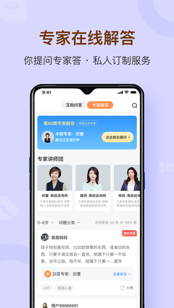 兰海说成长APP是一款专为儿童心理健康设计的手机软件,帮助家长和孩子建立更好的沟通关系。作为儿童心理学专家,兰海拥有丰富的经验,她的专业知识和实践经历让这款软件更具权威性。软件里有各种课程,涵盖不同年龄段的孩子,内容不仅解决实际问题,还能系统培养孩子的核心素质。此外,还有直播和在线答疑功能,随时可以向专业导师请教。