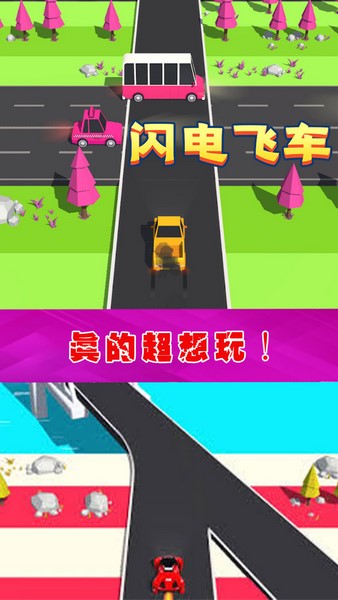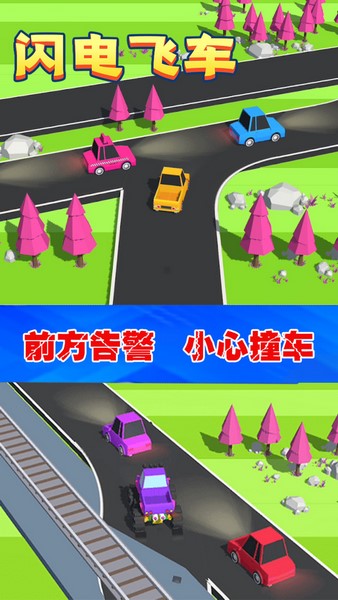 闪电飞车是一款公路驾驶玩法的游戏,采用了低模画风,为玩家构建了超大的地图,并且玩起来非常流畅。它的操作是很简单的,只需一只手也能完成操作,只要控制汽车的前进、停止即可。玩家可以控制汽车在路上行驶,并在交叉路口选择要前进的下一条路。在行驶的时候注意附近的车辆,千万不要发生事故。