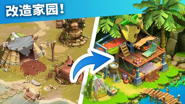 家庭岛农场游戏是一款模拟休闲类游戏,玩家将在原始时代生活,你需要不断进行探索,建造农场,建立起自己的家园。游戏玩法轻松,操作简单,以全新的游戏方式带你体验生存的奥秘。游戏中会有许多未知的区域,你需要去探索这座岛屿,搜索岛屿上的资源,不断来完善自己的家园,制造更多的东西,让你的家园看起更加舒适和方便,并快速的适应这里的生活。