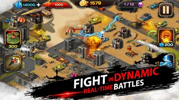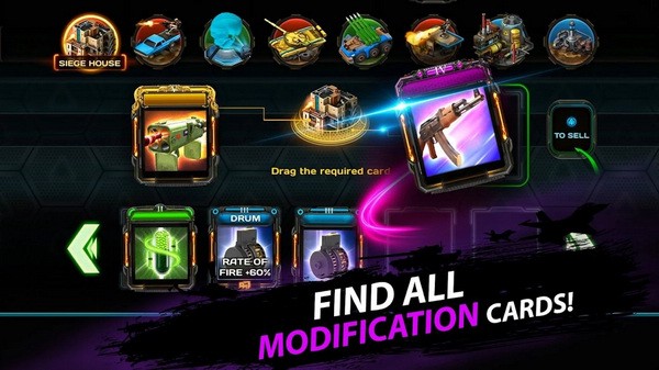 在战斗中寻找升级卡牌. 把它们应用到防御塔上. 使用所有的武器库: 坦克, 火炮, 手榴弹,机枪, 火箭筒等
