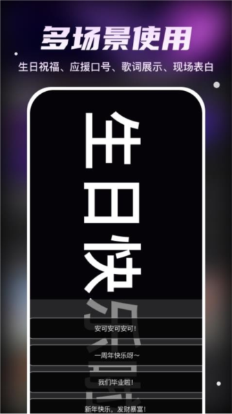1、手持弹幕: 软件为用户提供了手持弹幕的功能,适合在各种聚会场合中展示使用。