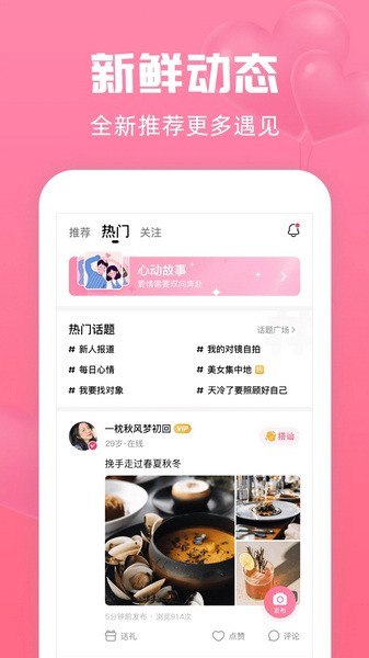 3、提供了独特的搭讪玩法,让同城交友变得更简单、更有趣。用户只需轻轻一点,就能与感兴趣的人进行在线互动。