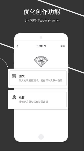 创作:创作你的优质文章, 可插入图片、音频,让你的文章有声有色