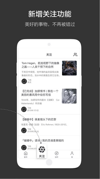 飞地是一款给用户带来线上阅读新方式的app,也是汇聚当下最优秀的一群原创作者的创作平台。飞地app每天都会推出精选的优质内容,包括诗歌、文学、艺术、电影、音乐等,带给用户精神上的饱满体验。如果你热爱文学,善于思考,飞地app一定非常适合你,因为在这里,你可以遇到一群和有你有着共同话题的人,可以感受到丰富而感性的青年生活,可以让自己的思想与更多的人发生碰撞、擦出火花。还有“中国诗人地图”、“青年写作者计划”、“艺术家影像计划”等专题,你可以直接对话当下最优秀的创作者。
