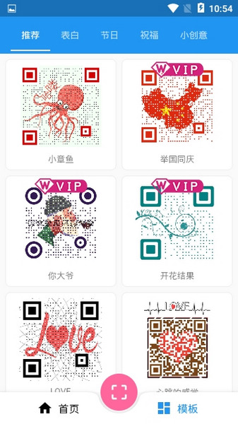 微微二维码是一款非常实用的二维码工具,除了基础的二维码扫描功能之外,软件还能为用户提供便捷的二维码制作功能。这里有着海量的优质二维码模板,用户可以按需选用,更有超多极具节日氛围的二维码装饰内容,非常适合大家在逢年过节的时候为亲朋好友们送去祝福。不管你是要表白,还是要在社交平台上与众不同,微微二维码都能做到!作为一款快速制作二维码的工具,软件还能为用户生成你的专属二维码,好用极了。