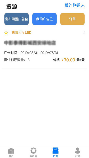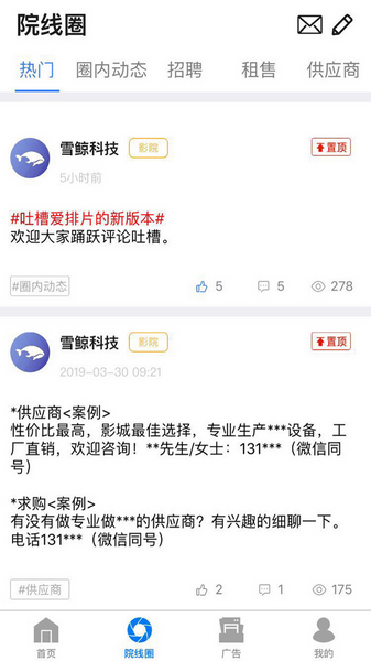集院线排片资源、影城广告资源、社区论坛等功能于一体